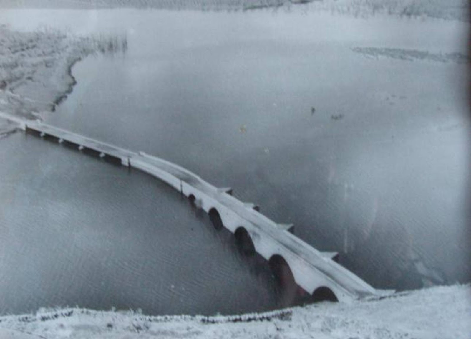 | Puente de Granadilla, ampliado, a punto de ser inundado por el pantano Gabriel y Galán. |